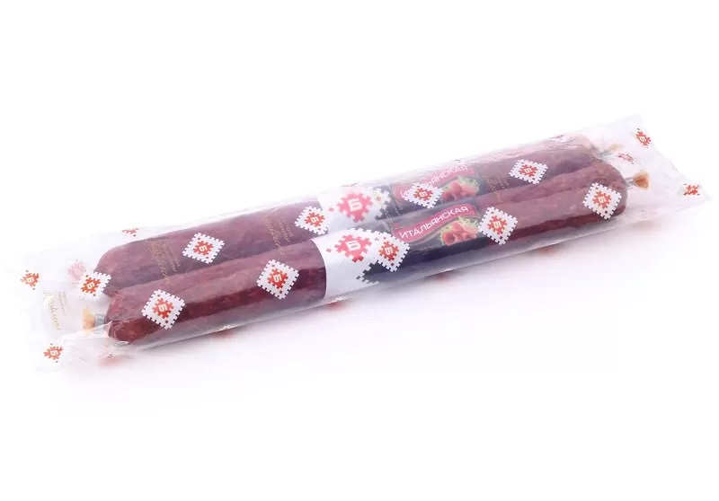 Сырокопчёная колбаса «Итальянская » отличается изысканным ароматом. Этот сорт изготавливается из высококачественной свинины с добавлением черного перца и мациса, благодаря которым колбаса приобретает насыщенный характерный вкус. Сырокопченая колбаса — продукт любимый многими. Обязательный гость праздничного стола, а некоторые не представляют завтрак без нее. Пряный аромат, умеренная жирность и разнообразие вкусовых оттенков завоевали любовь потребителей. Изготовленная с соблюдением технологии колбаса является деликатесом. Продукт замечательно вписывается в разные блюда, от бутербродов до нарезок.